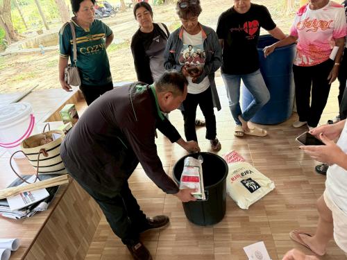 วันที่ 11 มีนาคม 2569 นางอุไรเกตุทัพ พัฒนาการอำเภอแหลมงอบ พร้อมด้วยเจ้าหน้าที่พัฒนาชุมชนอำเภอแหลมงอบ ร่วมกับชาวบ้านผู้สนใจบริเวณใกล้เคียง โดยมี นายพระรถ บุญตูบ นักวิชาการส่งเสริมการเกษตรชำนาญการ สำนักงานเกษตรอำเภอแหลมงอบ เป็นผู้นำชาวบ้านร่วมกันทำปุ๋ยหมักสูตรน้ำ ณ ศาลาประชาคมบ้านบางปิดบน หมู่ที่ 3 ตำบลบางปิด อำเภอแหลมงอบ จังหวัดตราด เพื่อนำไปใช้ในสวนผลไม้ของชาวบ้าน เป็นการประหยัดเงินซื้อปุ๋ย และแสดงถึงความสามัคคี ช่วยเหลือ แบ่งปันกันและกันในหมู่บ้าน