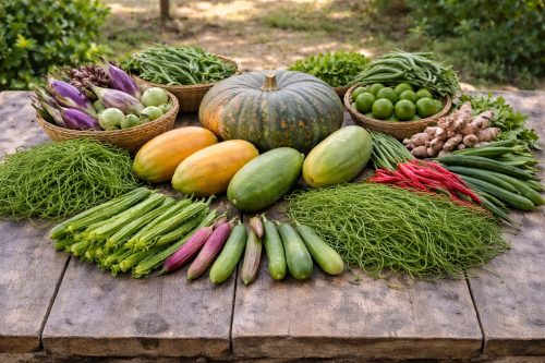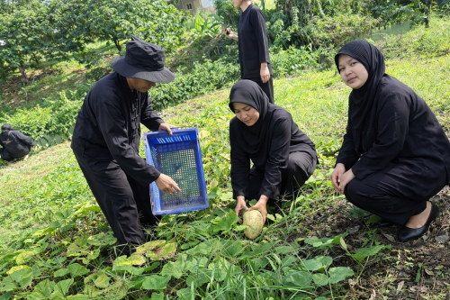 วันที่ 4 เมษายน 2569 นางอุไรเกตุทัพ พัฒนาการอำเภอแหลมงอบ พร้อมด้วยเจ้าหน้าที่พัฒนาชุมชนอำเภอแหลมงอบ และชาวบ้านบริเวณใกล้เคียง ร่วมเก็บผักสวนครัว ได้แก่ ฟักทอง มะละกอ หัวปลี แตงกวา ชะอม มะเขือ และผักอื่นๆ ในแปลงโคก หนอง นา นายรุ่งเรือง บุญเชษฐ์ หมู่ที่ 4 บ้านแหลมอวน ตำบลคลองใหญ่ อำเภอแหลมงอบ จังหวัดตราด เพื่อเป็นการเสริมสร้างความมั่นคงทางอาหาร และแบ่งปันกันระหว่างบ้านใกล้เรือนเคียง