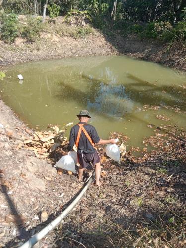 สพอ.แหลมงอบ ร่วมกับประมงอำเภอแหลมงอบดำเนินกิจกรรมโครงการการสร้างโปรตีนอย่างพอเพียงสู่ความมั่นคงทางอาหาร ตามแนวทางการน้อมนำแนวพระราชดำริสมเด็จพระกนิษฐาธิราชเจ้ากรมสมเด็จพระเทพรัตนราชสุดาฯสยามบรมราชกุมารี สู่ปฏิบัติการปลูกพืชสวนครัวเพื่อสร้างความมั่นคงทางอาหาร ดำเนินการแจกพันธ์สัตว์น้ำ (ปลานิล) จำนวน 200 ตัว แก่ครัวเรือนเป้าหมาย แปลงโคก หนอง นาของนายจำลอง คลี่หมื่นไวย ม.3 ต.คลองใหญ่ อ.แหลมงอบ จ.ตราด