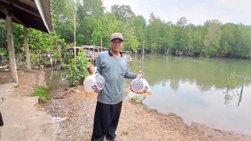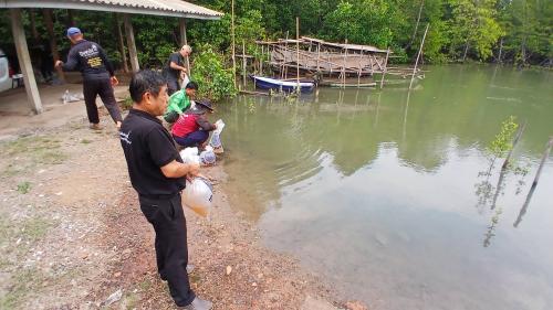 พช.แหลมงอบดำเนินกิจกรรมโครงการการสร้างโปรตีนอย่างพอเพียงสู่ความมั่นคงทางอาหารร่วมกับศูนย์วิจัยและพัฒนาการเพาะเลี้ยงสัตว์น้ำชายฝั่งตราดร่วมกับ อบต.บางปิด หมู่ 5 ปากคลอง หมู่ 6 หินดาษ น้ำกุ้งขาวมาปล่อยคืนสู่แหล่งน้ำตามธรรมชาติ 2,000,000 ตัว