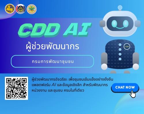 📲 เริ่มต้นพูดคุยกับ CDD AI Chatbot ได้แล้ววันนี้ ที่ 👉 https://cddata.cdd.go.th/cddai/